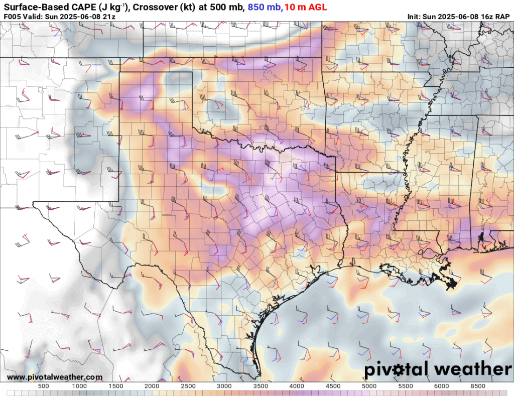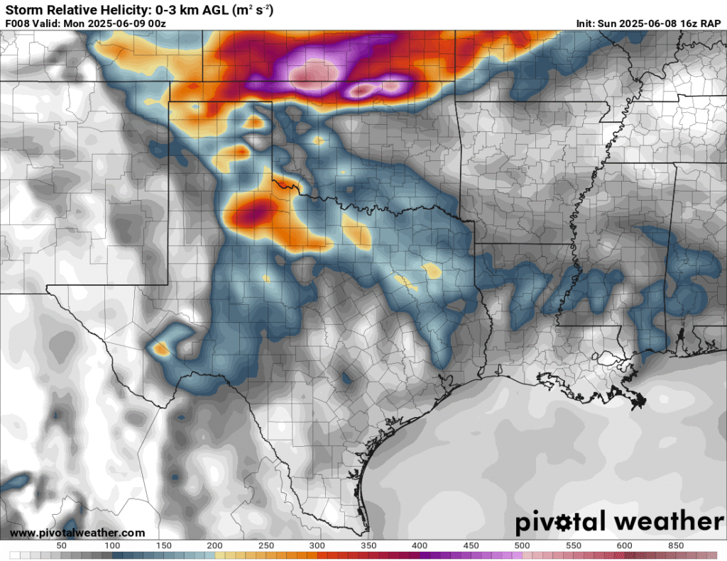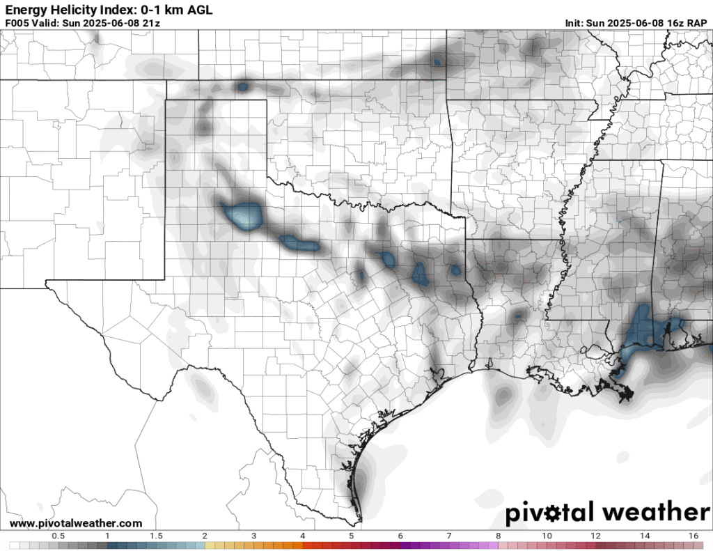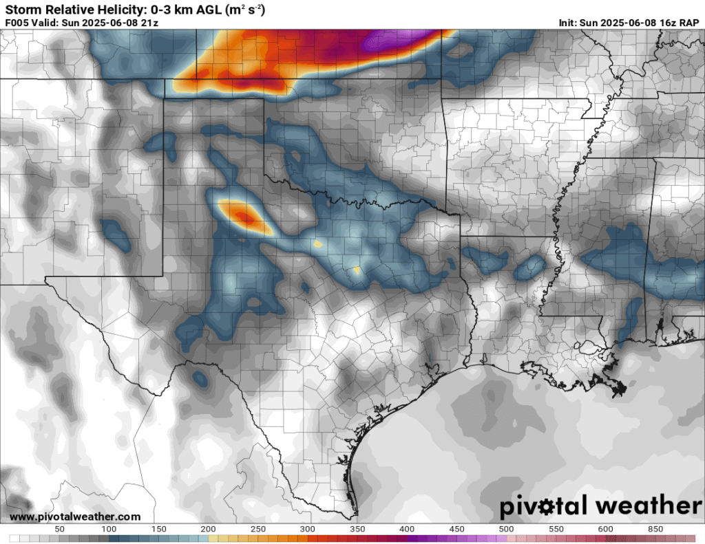 A very unstable atmosphere in place over the Texas panhandle with supercell shear. As it’s June, temperatures are a little high with RAP showing low 90 degree surface temps on the south side of the boundary with 70 degree dewpoints right up against the caprock.