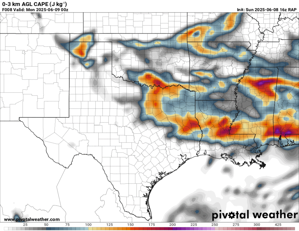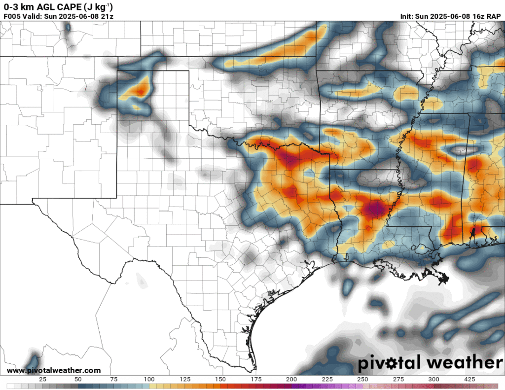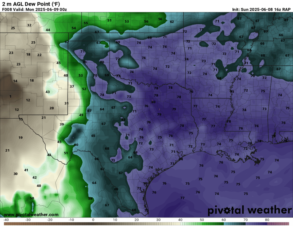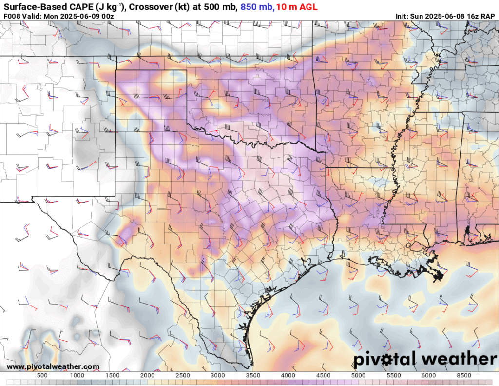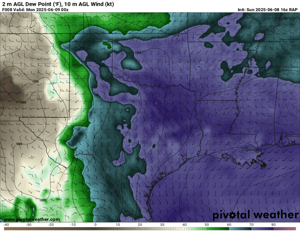 A very unstable atmosphere in place over the Texas panhandle with supercell shear. As it’s June, temperatures are a little high with RAP showing low 90 degree surface temps on the south side of the boundary with 70 degree dewpoints right up against the caprock.